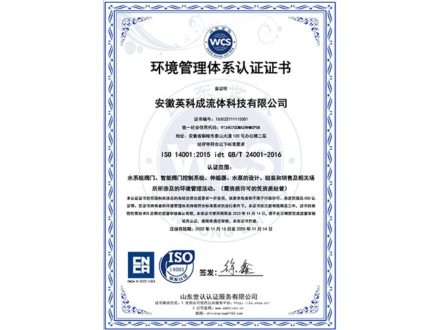 安徽英科成流體科技有限公司位于黃山腳下長江之濱的中國古銅都-安徽省銅陵市。公司注冊資金1.1億,是國內(nèi)一家專業(yè)致力于給排水行業(yè)系統(tǒng)解決方案、閥門以及智能閥門技術(shù)研發(fā)與生產(chǎn)銷售服務(wù)為一體的企業(yè)。   我們擁有完善的質(zhì)量控制體系和檢測設(shè)備,公司主要的產(chǎn)品有閘閥、蝶閥、偏心半球閥、液控蝶式止回閥、靜音止回閥、橡膠瓣止回閥、活塞式流量調(diào)節(jié)、錐型閥、節(jié)能型泵控閥、倒流防止器、減壓閥、排氣閥、排泥閥、伸縮器、閘門、啟閉機(jī)等二十多個(gè)系列,可以充分滿足客戶的一站式需求。……